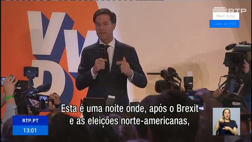 Primeiro-ministro Mark Rutte reeleito na Holanda