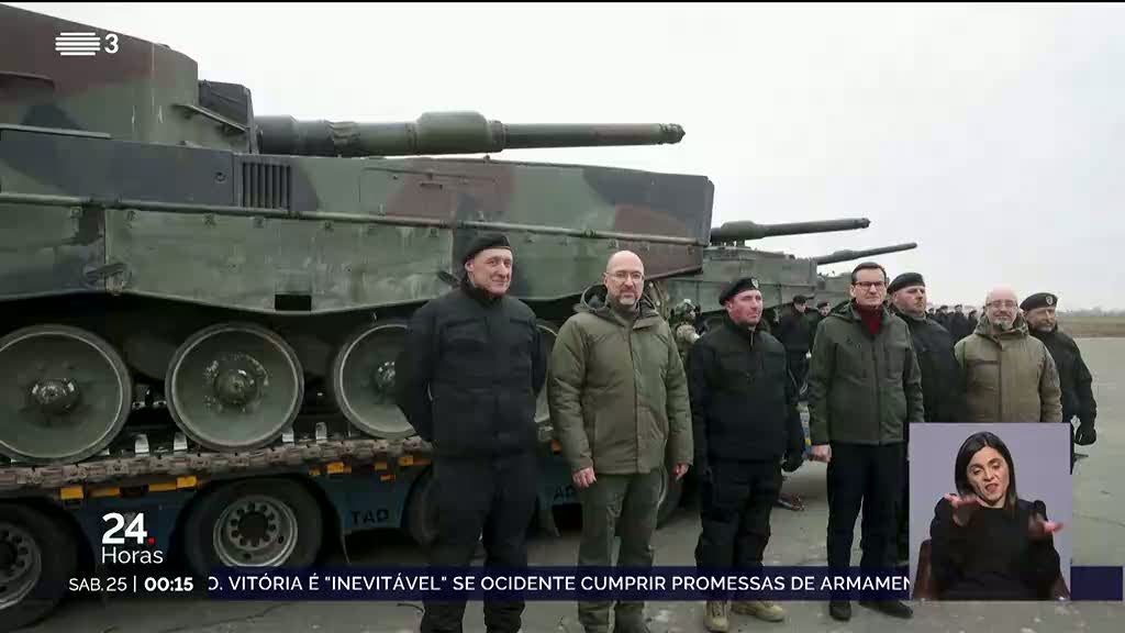 Já chegaram à Ucrânia os primeiros tanques Leopard 2, enviados pela Polónia. Os tanques foram entregues no dia em que se assinalou um ano de guerra.