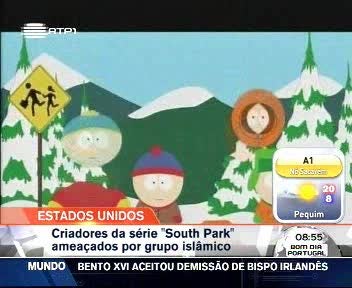 A televisão norte-americana que propduz a série "South Park" viu-se obrigada a retirar todas as referências ao profeta Maomé dos episódios. A medida foi tomada depois de os autores da série terem recebido ameaças de um grupo islâmico.