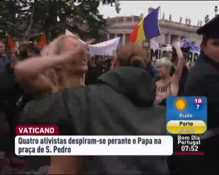 Quatro ativistas ucranianas despiram-se no Vaticano quando o Papa estava a recitar o Angelus. As quatro mulheres estavam misturadas entre os fieis. No corpo levavam escritas palavras de ordem relacionadas com os direitos das mulheres e dos homossexuais.