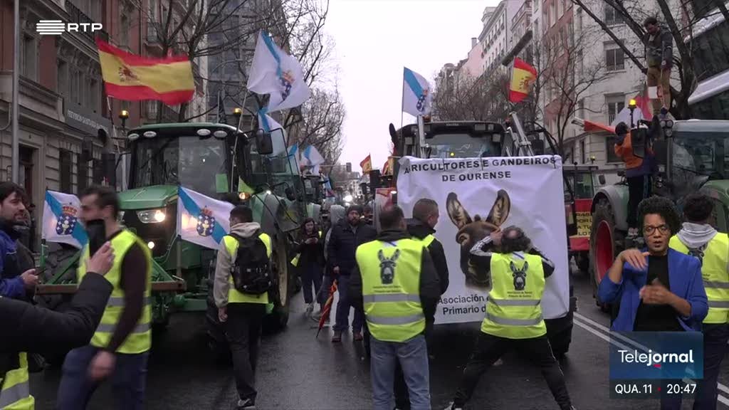 Centenas de tratores e pelos menos dois mil agricultores protestaram contra os cortes da PAC e o Acordo do Mercosul.