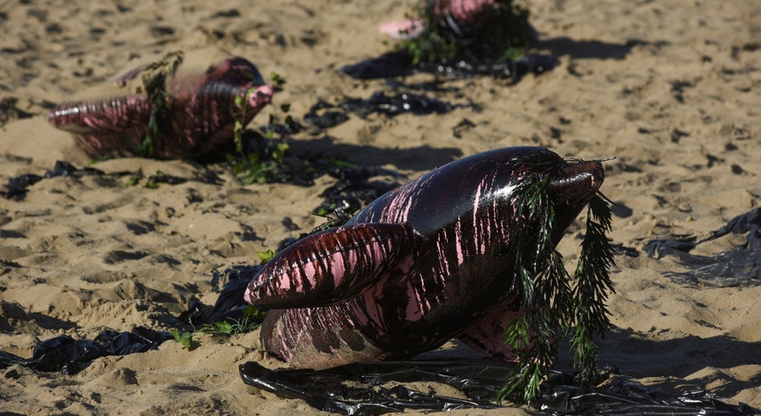 Aproveitando a cimeira do grupo BRICS, houve um protesto ambientalista no Rio de Janeiro. Na praia de Copacabana foram colocados vários modelos de golfinhos cobertos por vegetação e um líquido preto para simular petróleo.