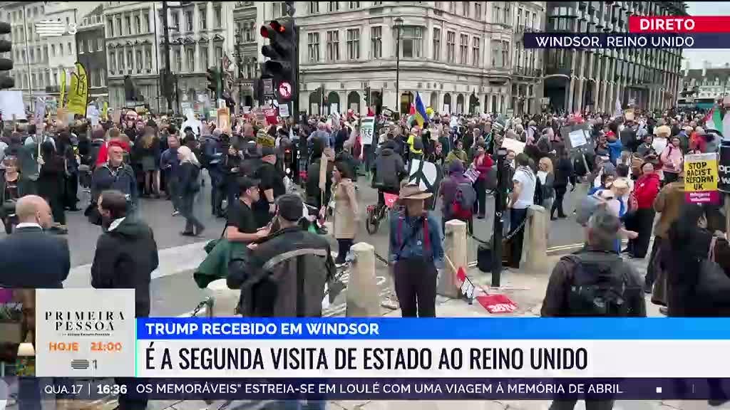 Milhares de pessoas reuniram-se esta tarde em Londres para protestar contra a visita de dois dias do presidente Donald Trump ao Reino Unido.