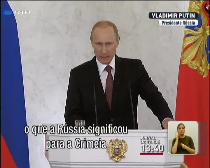 Indiferente às sanções anunciadas ontem pelos Estados Unidos e pela União Europeia, o presidente russo aprovou formalmente a integração da Crimeia na Federação Russa. O anúncio foi feito pelo próprio Vladimir Putin, num discurso perante as duas câmaras do parlamento russo.