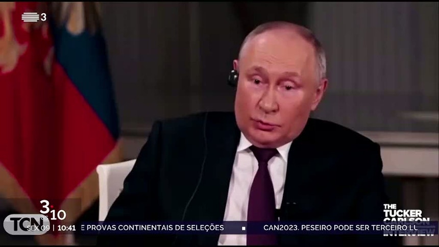 Tucker Carlson é um polémico conservador e ex-apresentador da Fox News, próximo do ex-presidente Donald Trump, a quem apoia nas próximas eleições presidenciais norte-americanas. A entrevista foi transmitida no espaço próprio que Carlson tem agora na internet.