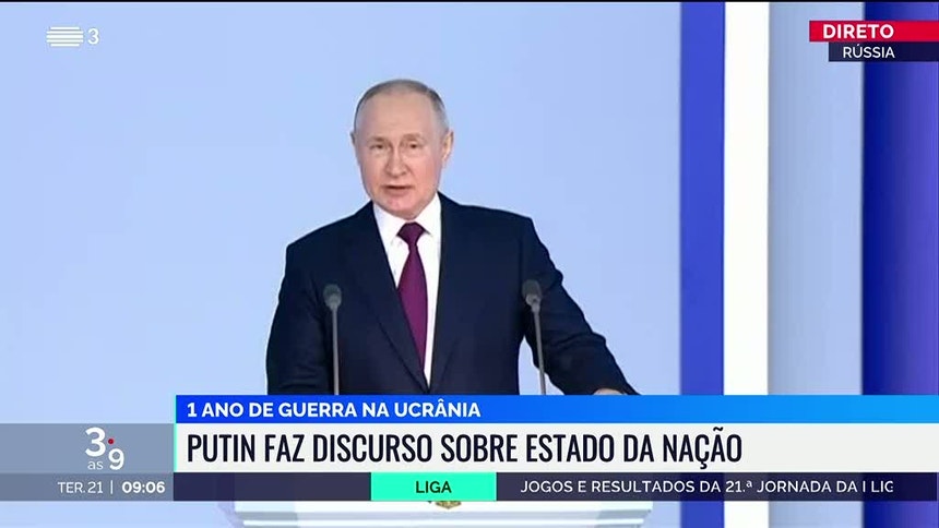 Num discurso sobre o Estado da Nação, a campanha militar na Ucrânia e a situação internacional, o presidente russo acusou o Ocidente de querer impor à Rússia uma "derrota estratégica" e acabar com o país "de uma vez por todas". Dirigindo-se ao povo russo e à comunidade internacional, Vladimir Putin garantiu ainda, esta segunda-feira, que Moscovo irá alcançar seus objetivos na Ucrânia "passo a passo", embora tenha admitido que o país vive um momento "difícil".