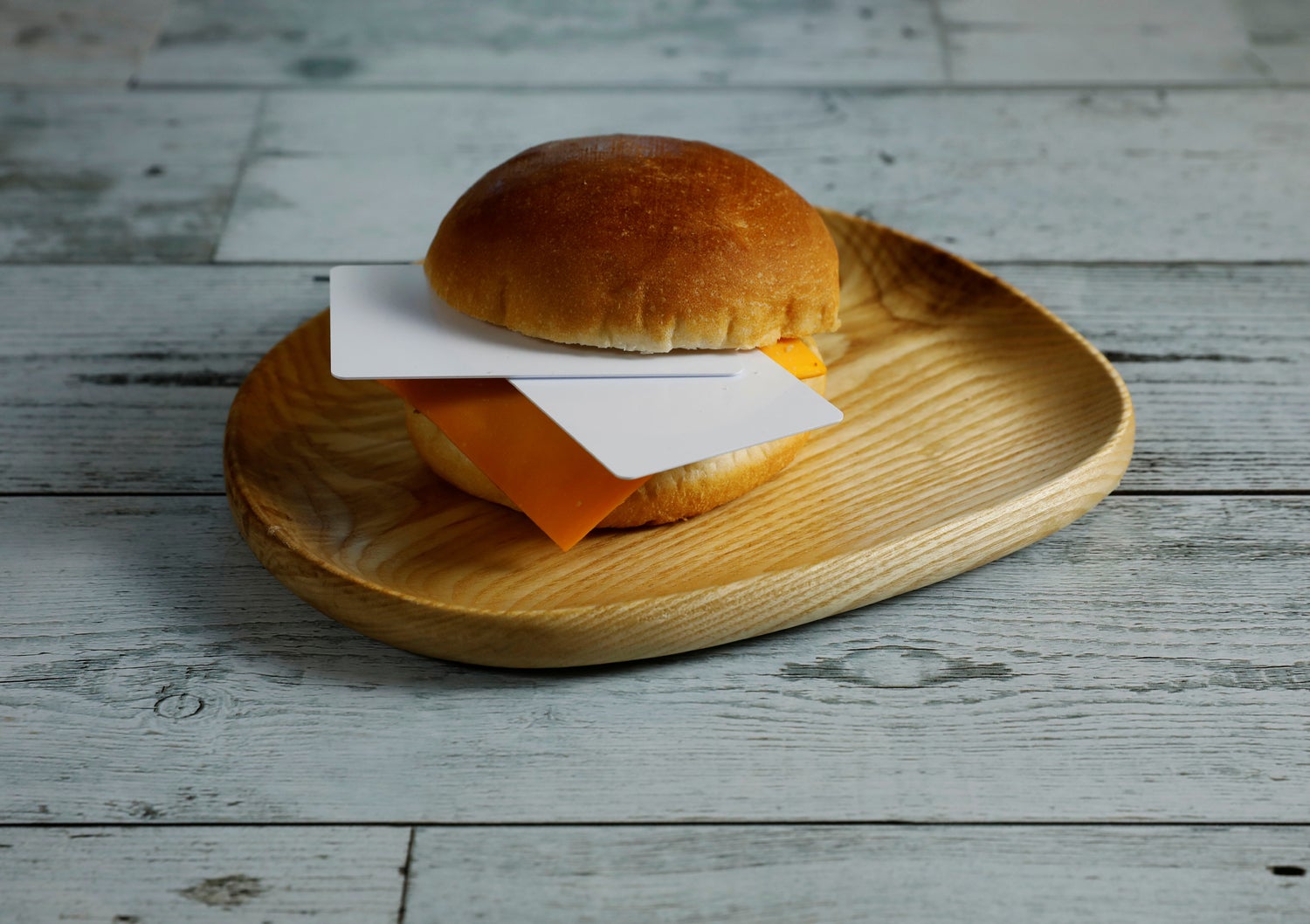 Cartões plásticos, 7 gramas, equivalentes à quantidade de plástico que alguém pode ingerir em dez dias.