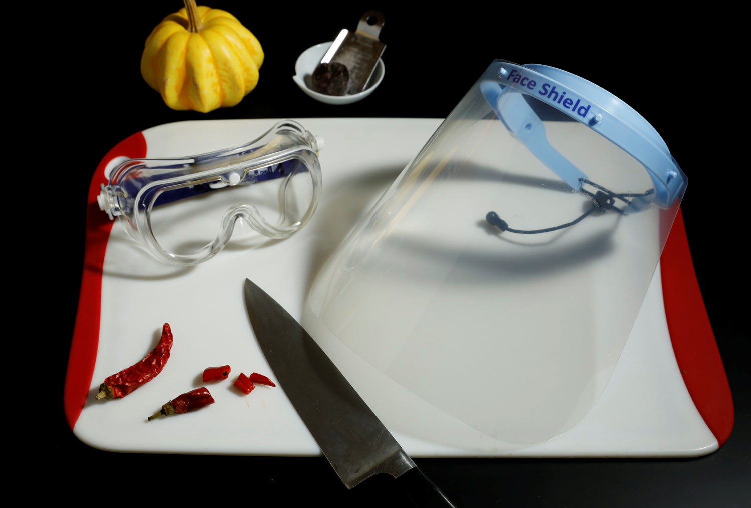 Viseira e um par de óculos de plástico, equipamentos de proteção contra a covid-19, pesam 151 gramas, equivalente à ingestão de plástico em oito meses.