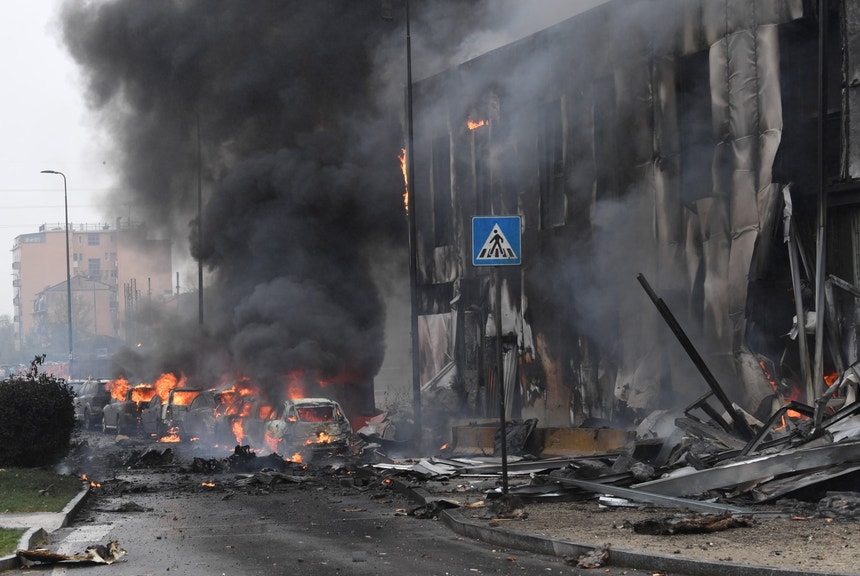 Um avião turístico, que tinha descolado do aeroporto de Linate, com direção a Olbia, na Sardenha, caiu cinco minutos após a descolagem. O avião incendiou-se após embater num edifício de escritórios vazio, que se encontrava em obras. Morreram os sete passageiros, entre os quais se encontrava uma criança, e o piloto.