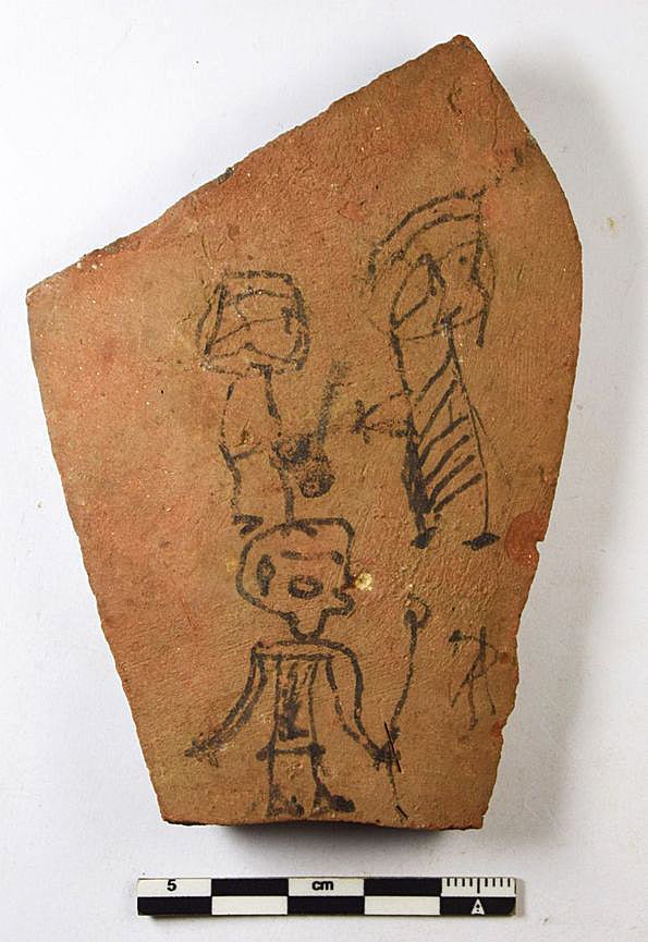 Os arqueólogos também encontraram óstracos pictóricos, uma categoria especial, conta Christian Leitz, arqueólogo que lidera a equipa de investigação: "Esses fragmentos mostram várias representações figurativas, incluindo animais como escorpiões e andorinhas, humanos, deuses do templo próximo, até figuras geométricas".