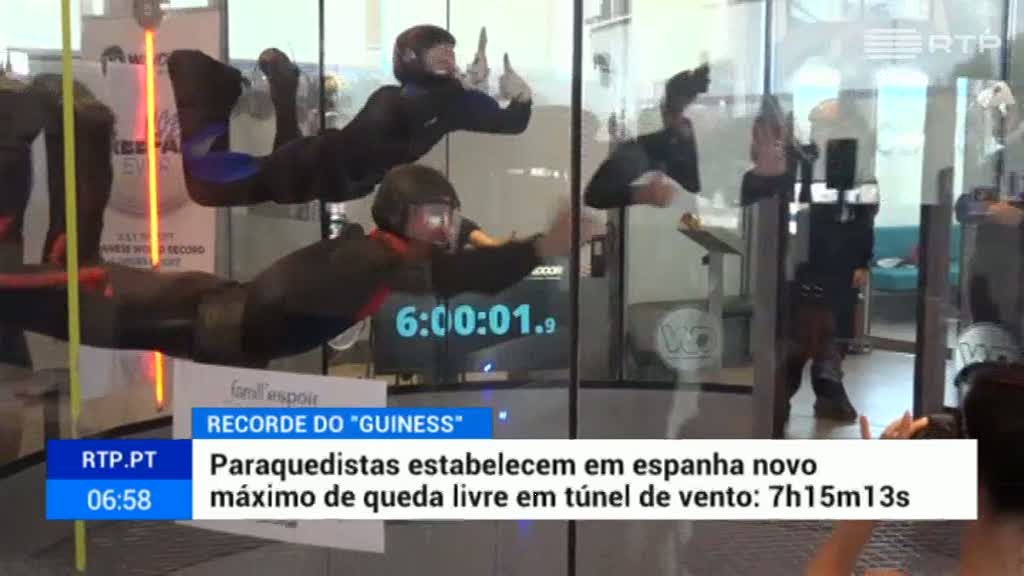 Há um novo recorde mundial de queda livre em túnel de vento. Foram sete horas, 15 minutos e 13 segundos a planar.