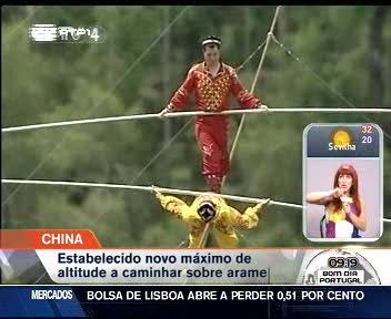 Mundo Recorde mundial no arame Um Chinês estabeleceu um novo recorde mundial a caminhar no arame. RTP / VER MAIS PUB