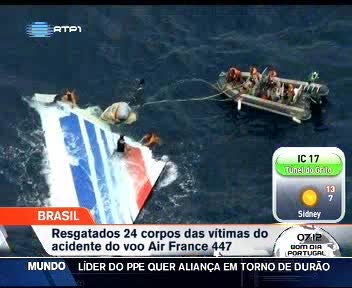 No Atlântico, as equipas de buscas prosseguem os seus trabalhos. Ontem uma equipa de mergulhadores brasileiros encontrou entre os destroços a cauda avião, uma parte importante do aparelho que poderá ajudar os investigadores a descobrir o que aconteceu com o voo 447 da Air France.