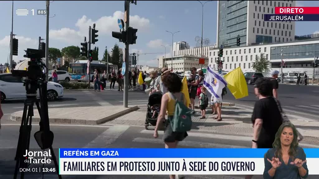 Reféns israelitas mortos em Gaza. Famílias em protesto junto à sede do Governo