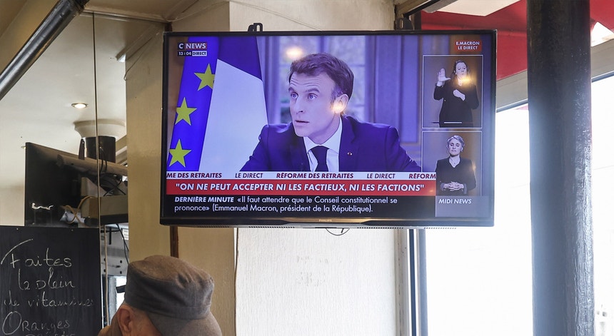 O presidente de França reafirma o apoio ao Governo e assegura que a polémica reforma das pensões é para seguir em frente, até à promulgação prevista para o final deste ano.