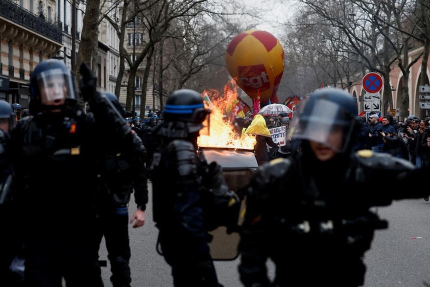 Para além disso, várias greves têm paralisado diversos setores, como os transportes, energia e também a recolha do lixo.De acordo com a Confederação Geral do Trabalho (CGT), cerca de 1,7 milhões de pessoas protestaram em França esta quarta-feira. Já o Ministério do Interior contabilizou 480 mil manifestantes.