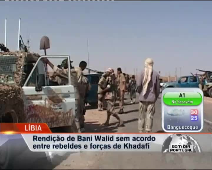 Falharam as negociações para a rendição da cidade líbia de Bani Walid. O local é um dos últimos bastiões das forças de Kadhafi. Apesar do líder dos rebeldes ter dado às forças de Kadhafi até 10 de setembro para deporem as armas em todo o país, Bani Walid parece ser excepção. Milhares de combatentes rebeldes convergiram para a zona nos últimos dias e estão agora a 15 quilómetros do centro da cidade.