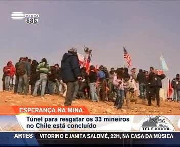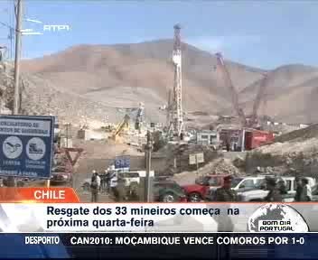 O resgate dos 33 mineiros que estão soterrados numa mina de São José, no Norte do Chile, há mais de dois meses, começa na próxima quarta feira. De acordo com o ministro das Minas do Chile, a operação deve durar dois dias. A perfuração de um túnel de 622 metros de profundidade, entre a superfície e uma câmara da mina, ficou ontem completa, tendo os técnicos decidido fazer um reforço com tubos de aço em parte do túnel.