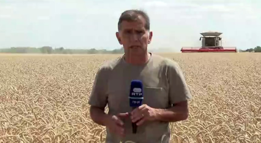 A caminho do sul da Ucrânia, os enviados especiais da RTP António Esteves e Cláudio Calhau passaram por um campo de trigo em Podilsk.