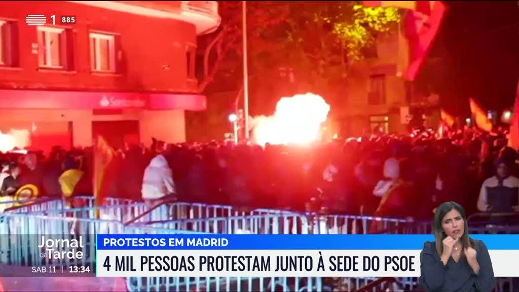 São manifestações contra a promessa de Pedro Sanchez de amnistia aos independentistas catalães, como contrapartida para ter apoios para formar governo.