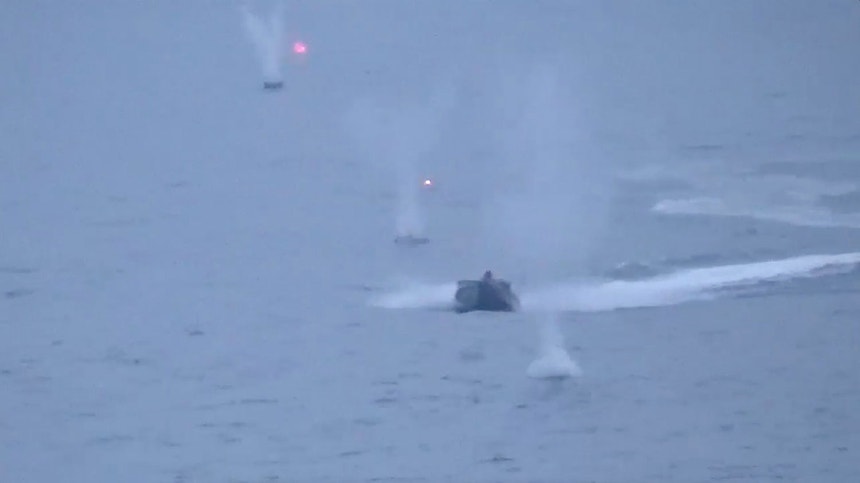 🚨#BREAKING: #Russia's MoD has released footage of them destroying a Ukrainian unmanned surface vessel that tried to attack the Russian warship Ivan Khurs in the Black Sea pic.twitter.com/oZJSKapNSb