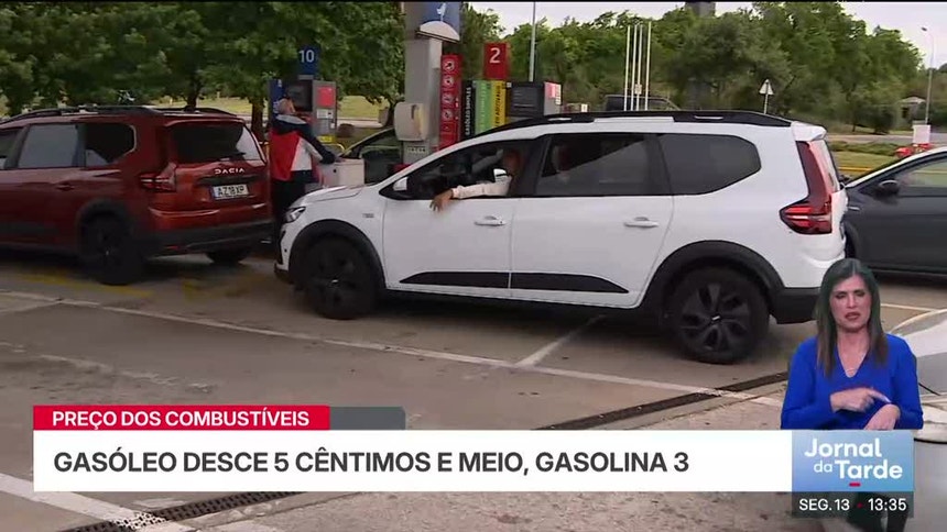 Um litro de gasóleo desceu 5,5 cêntimos e a gasolina três cêntimos. É a maior descida no preço dos combustíveis desde o início do conflito no Médio Oriente. Jornal da Tarde | 13 de abril de 2026