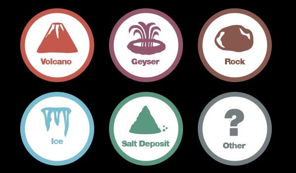 Para já, a NASA avança com cinco hipóteses: vulcões, geiseres, gelo, sal, rochas, mas deixa uma sexta hipótese à sua escolha e imaginação.