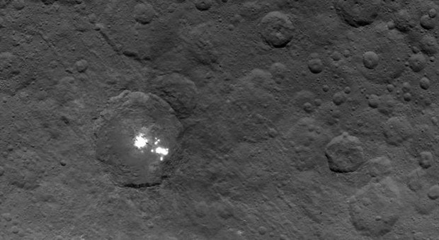 Os pontos/manchas brancas que a sonda norte americana Dawn encontrou e revelou na superfície de Ceres, localizado no cinturão de asteroides entre Marte e Júpiter, continua a ser uma incógnita para a comunidade científica.