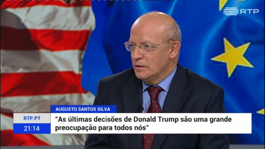 Sobre as mais recentes declarações do Presidente dos EUA, Donald Trump, Augusto Santos Silva não tem dúvidas em se assumir "preocupado". O que não impede colaboração com Washington. O ministro aborda as três áreas em que Portugal espera cooperação com os Estados Unidos e sublinha os perigos de uma quebra do eixo transatlântico. Já a atual situação mundial é, para a Europa, uma "oportunidade".