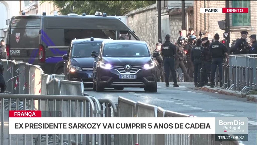 É a primeira vez que um ex-chefe de Estado é condenado e preso. Nicolas Sarkozy já dorme esta noite na prisão de La Santé, numa cela de 11 metros quadrados, como qualquer outro recluso. O ex-presidente de França saiu de casa pouco depois das 9h00 locais para se dirigir à cadeia onde se prevê que cumpra cinco anos pelo crime de conspiração criminosa na tentativa de utilização de dinheiro líbio, destinado a financiar a sua campanha eleitoral de 2007.