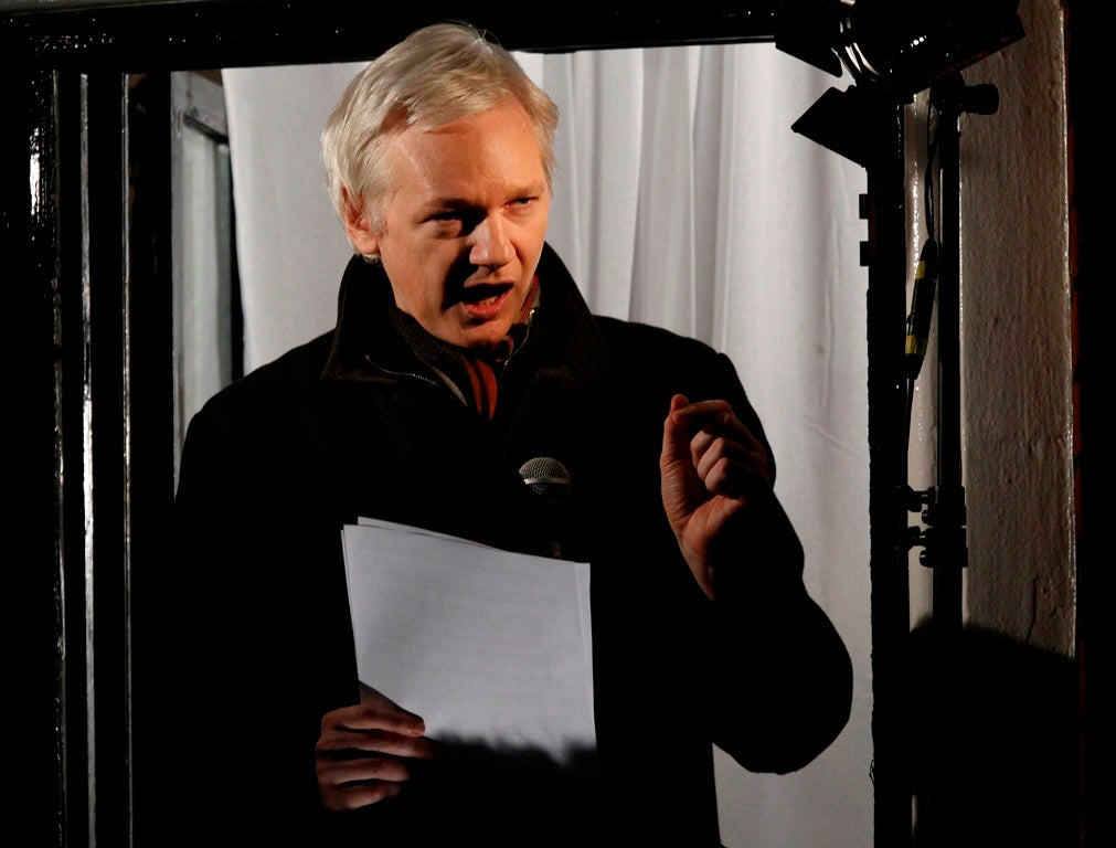 Primeiras declarações feitas à imprensa, por Julian Assenge, da varanda da embaixada do Equador em Londres, no dia 20 de dezembro de 2012 - Foto: Reuters
