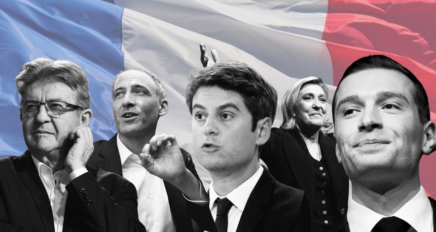 Por outro lado, a Nova Frente Popular, aliança de esquerda de Raphaël Glucksmann e Jean-Luc Mélénchon, surgia como segunda força mais votada, seguindo-se o campo presidencial Ensemble pour la République.