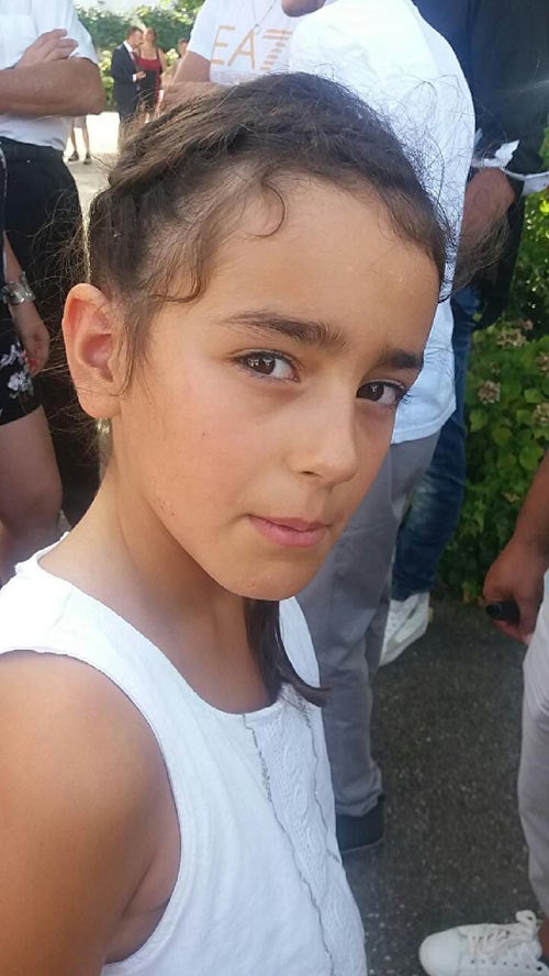 Maëlys de Araujo tem 9 anos, mede 1,30 metros e pesa 28 quilos. Tem pele morena, olhos castanhos e cabelos escuros até meio das costas.
