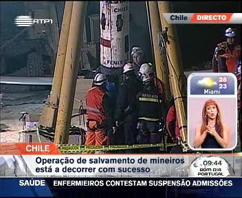 já foram resgatados seis dos 33 mineiros que estavam presos na mina da São José, no Norte do Chile, desde Agosto. As operações começaram perto da meia noite, quatro da madrugada em Portugal.