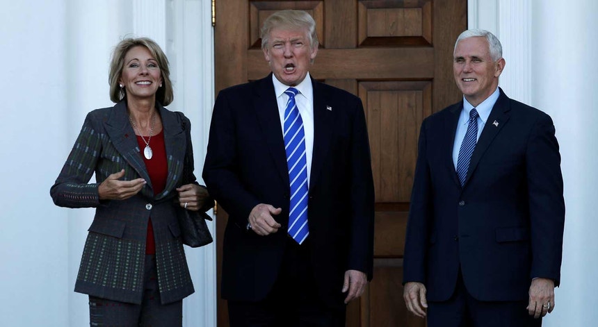 A secretária da Educação escolhida é Betsy DeVos, uma milionária conhecida pela sua estrénua defesa das escolas privadas e altamente contestada desde que foi conhecida a sua nomeação.