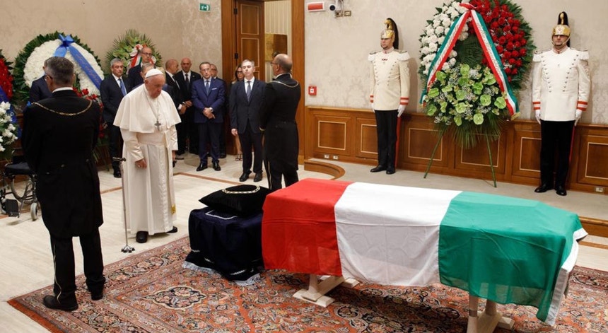 O papa, o presidente da República e a primeira-ministra de Itália estiveram este domingo no velório de Giorgio Napolitano para prestar homenagem.