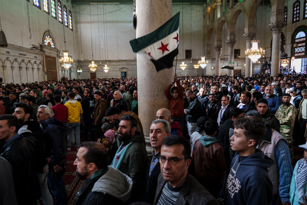 Milhares de pessoas encheram a Grande Mesquita de Damasco para a primeira oração de sexta-feira desde a queda do regime.