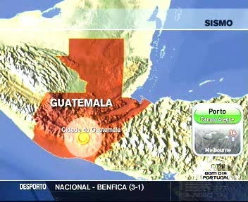 A terra tremeu na Guatemala. O sismo teve 6,1 na escala de Richter. O epicentro foi localizado a cerca de 100 quilómetros de profundidade e a setenta da capital. Manágua não sentiu aliás o sismo que não provocou vítimas ou danos. Mas em El Salvador, país vizinho, o tremor de terra provocou o pânico entre a população.