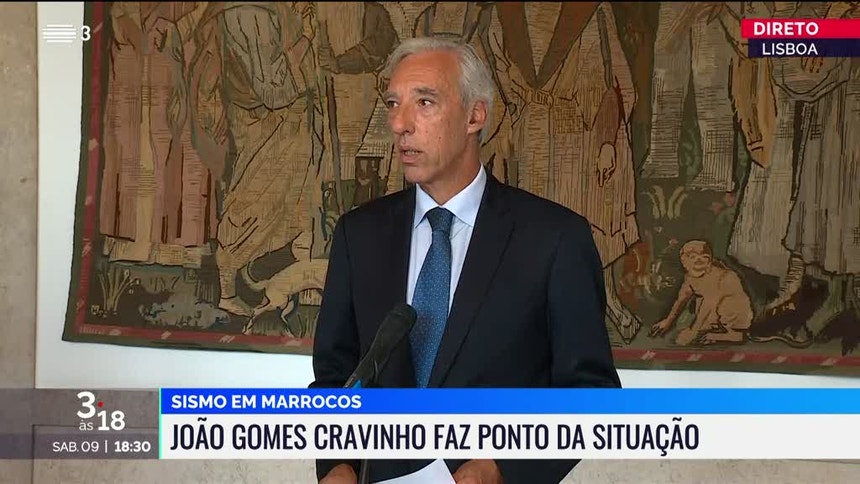 Segundo a mesma nota, o ministro dos Negócios Estrangeiros, João Gomes Cravinho, fará um ponto de situação sobre a ajuda de Portugal a Marrocos e sobre os portugueses que estão no território pelas 18:15 de hoje, na sede do MNE, em Lisboa.