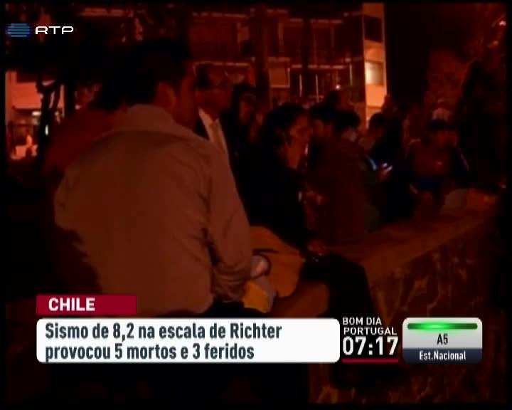A Terra tremeu no Chile. O terramoto atingiu os 8, 2 graus na escala de Richter. Há cinco mortos e 3 feridos, até ao momento. O sismo aconteceu a 89 quilómetros da costa, a uma profundidade de 46 quilómetros. Provocou ondas com mais de dois metros.