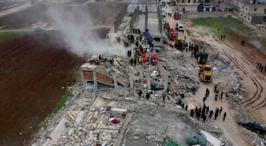 Em Alepo, na Síria, multiplicam-se os esforços para encontrar pessoas com vida nos escombros. Na noite de segunda-feira, muitos dos habitantes da cidade ficaram em abrigos.