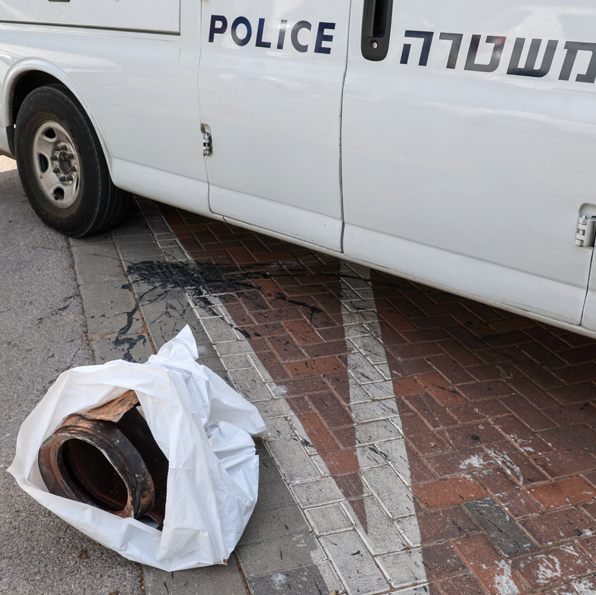 Pedaço de um rocket recolhido pela polícia israelita. Jack Guez - AFP
