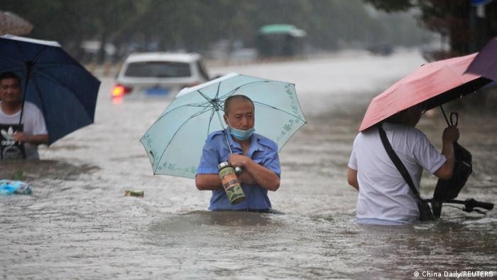As chuvas torrenciais que atingiram a cidade de Zhengzhou, capital da província de Henan, deixaram submerso em água partes do sistema de metro e um túnel rodoviário. As ruas transformaram-se em canais, com o rápido fluxo de água a arrastar carros e pessoas.