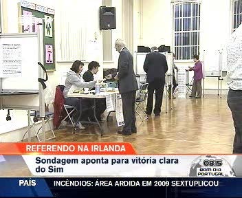 O "sim" pode ter obtido 60 por cento dos votos no referendo sobre o Tratado de Lisboa. Este foi o resultadop de uma sondagem à boca das urnas, revelada pelo jornal "Irish Times" e pela Rádio e Televisão Nacional RTE. Os resultados oficiais são conhecidos a meio da tarde.