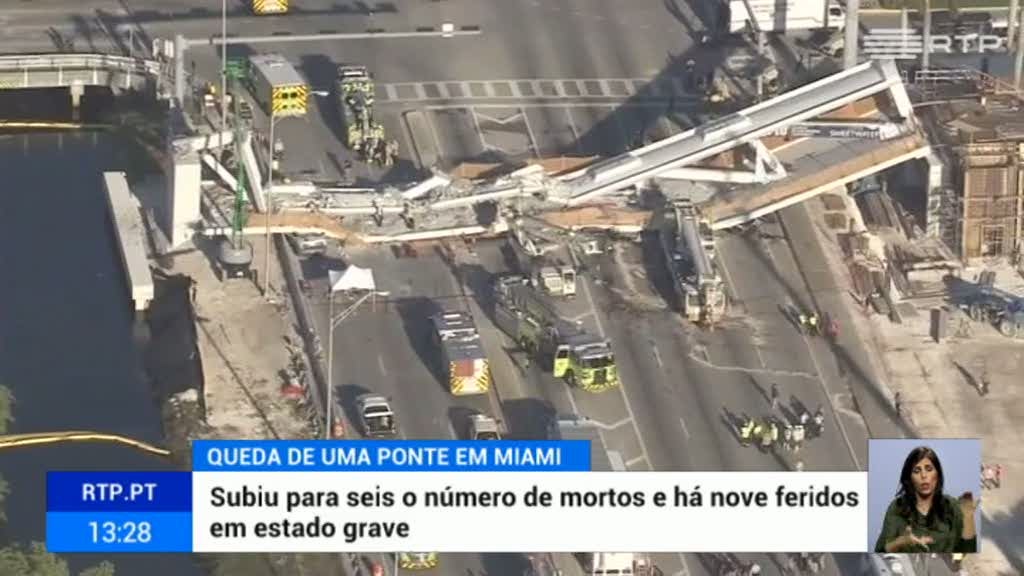 Subiu para seis o número de mortos provocados pelo colapso de uma ponte pedonal em Miami. A ponte ligava a Universidade Internacional da Florida a uma zona de residências de estudantes.