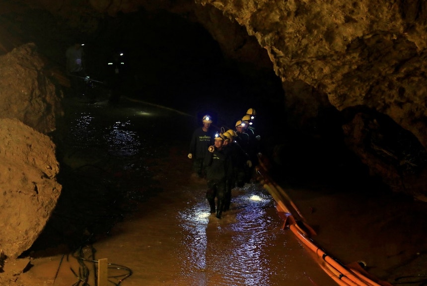 Devido a uma avaria súbita das bombas que retiravam a água do interior da gruta, o nível da água aumentou quando ainda havia mergulhadores no complexo subterrâneo.
