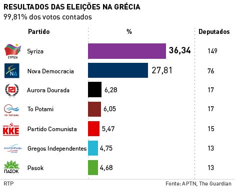 O Syriza ficou a dois deputados da maioria absoluta nas legislativas gregas, mas o novo primeiro-ministro da Grécia, Alexis Tsipras, estabeleceu um acordo com os Gregos Independentes, formação de direita soberanista e anti-austeridade.