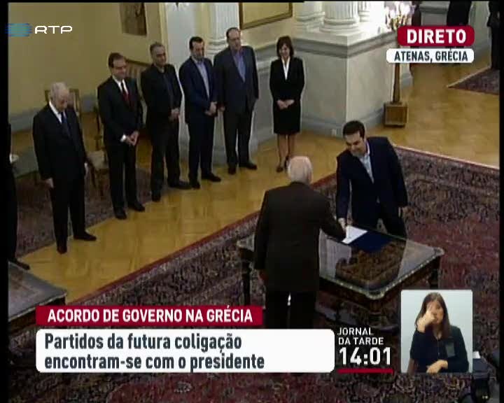 A agência Reuters adianta que havia "um acordo de princípio". Um entendimento que proporciona agora uma aliança incomum, ao juntar dois partidos de campos opostos do espectro político, unidos por uma mesma rejeição ao programa de resgate da União Europeia e do Fundo Monetário Internacional. Intervenção de Alexandre David, enviado especial da Antena 1 a Atenas