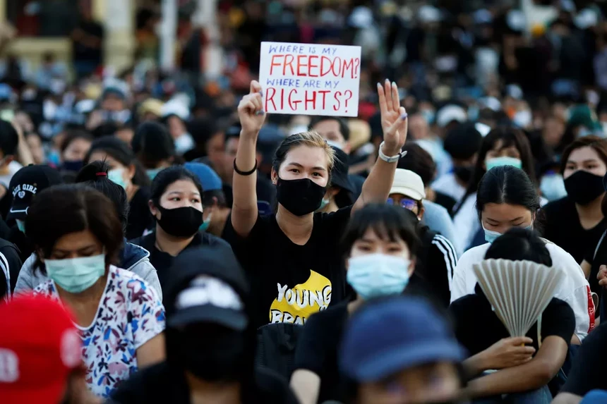 Na quarta-feira, dezenas de milhares de manifestantes pró-democracia saíram às ruas, no centro histórico de Banguecoque, para pedir a renúncia do Governo e reformas que limitem o poder dos militares e da monarquia, esta última uma questão altamente controversa no país.
