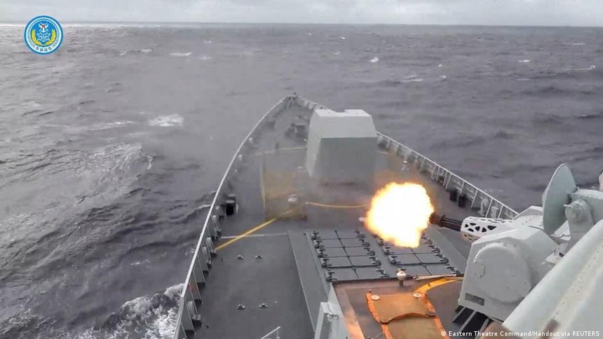 As unidades de artilharia de longo alcance do Exército de Libertação Popular (ELP) dispararam em direção a uma área marítima próxima da linha das 24 milhas náuticas (44,4 quilómetros) ao largo de Taiwan.